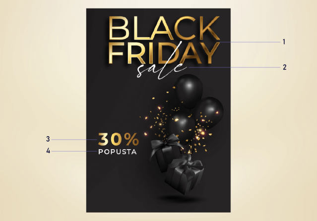Black Friday plakat ili letak, idealan za komuniciranje akcijskih sniženja i popusta za vrijeme trajanja Black Friday.