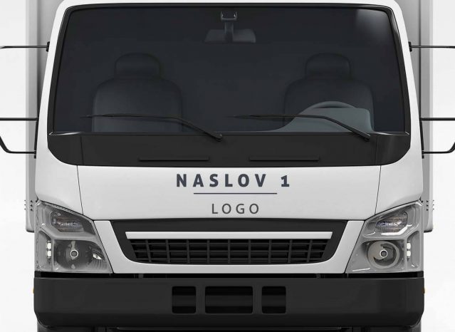 Naljepnica za prednju stranu kabine kamiona s prikazom color loga i slogana tvrtke. Montaža ove naljepnice za kamion je kompleksna pa predlažemo da istu povjeriš našem stručnom teamu.