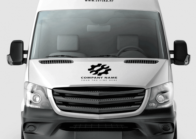 Naljepnica za poklopac motora kombi vozila  i web adresom tvrtke. Montaža je kompleksnija pa predlažemo da je povjeriš nama.