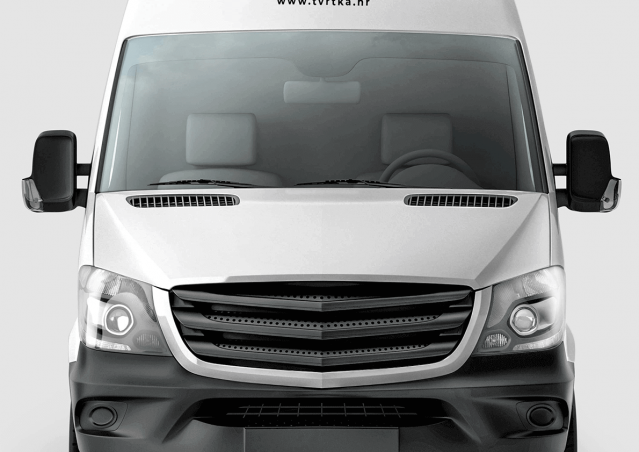 Naljepnica za poklopac motora kombi vozila  i web adresom tvrtke. Montaža je kompleksnija pa predlažemo da je povjeriš nama.