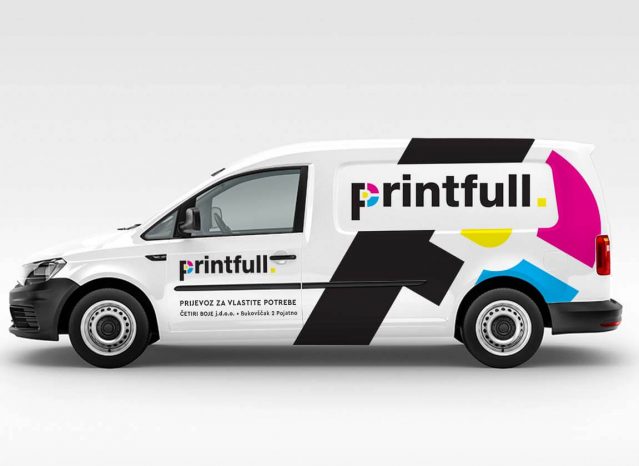 - Pozadinska grafika – pozicionira se na teretnom dijelu vozila. Sjajan efekt se dobiva uvećanjem pojedinih elemenata logotipa ili pozadinskom fotografijom povezanom s tvojom djelatnosti.