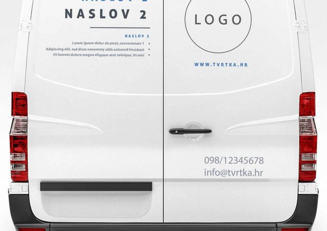 Naljepnice za stražnju stranu kombi vozila s logom, kontakt podacima tvrtke te izdvojenim tekstualnim elementima za opis ponude. Montaža je jednostavna pa je možeš obaviti samostalno.