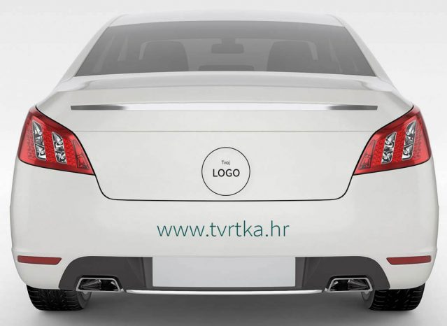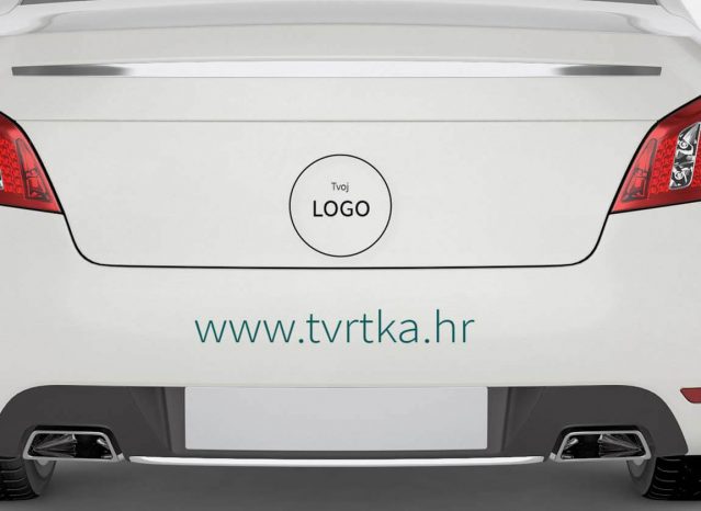 Naljepnica za stražnju stranu osobnog vozila s logom i web adresom tvrtke. Montaža je jednostavna pa je možeš obaviti samostalno uz pomoć pribora za montažu.