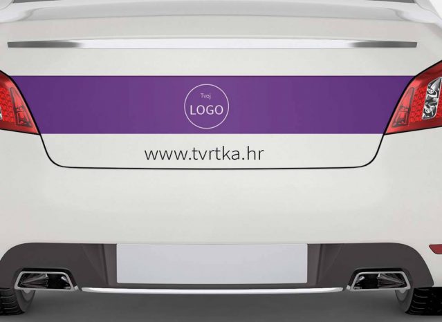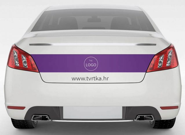Naljepnica za stražnju stranu osobnog vozila s logom i web adresom tvrtke. Montaža je jednostavna pa je možeš obaviti samostalno uz pomoć pribora za montažu (prodaje se posebno).