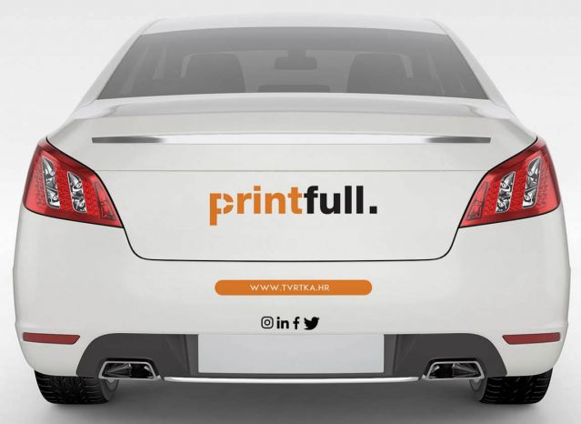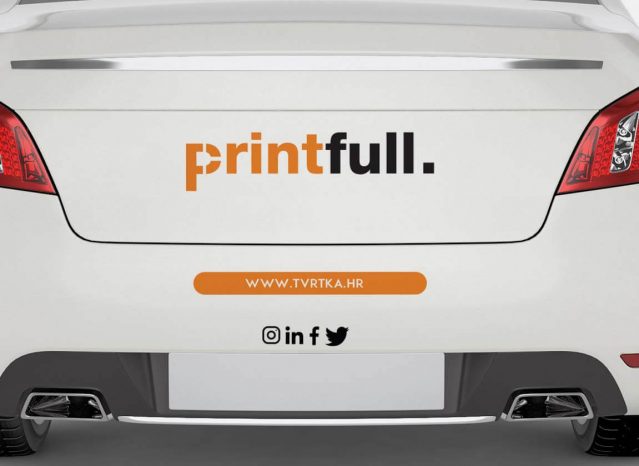 Naljepnice za stražnji dio osobnog vozila s izmjenjivim logom, web adresom i ikonama društvenih mreža. Montaža je jednostavna pa ćeš je moći obaviti samostalno,a kao dodatna opcija tu su i naše usluge stručnog postavljanja na vozilo.