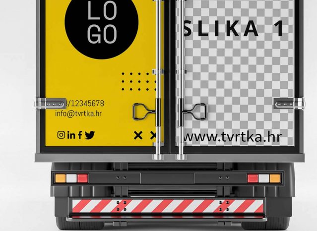 Naljepnice za stražnju stranu kamiona s izmjenjivim elementima. Montaža naljepnica za kamion je kompleksna pa predlažemo da istu povjeriš našem stručnom teamu.