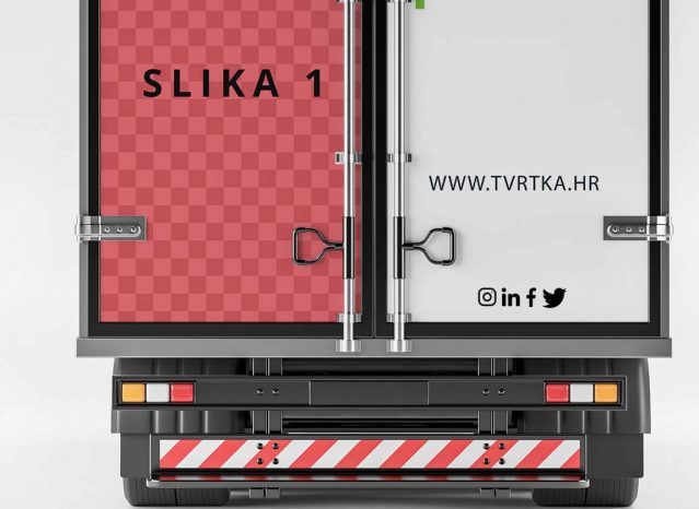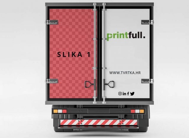 Naljepnice za stražnju stranu kamiona s izmjenjivim elementima. Montaža ovih naljepnica je jednostavna i možeš je obaviti samostalno, a tu su i naše dodatne usluge montaže na vozilo.
