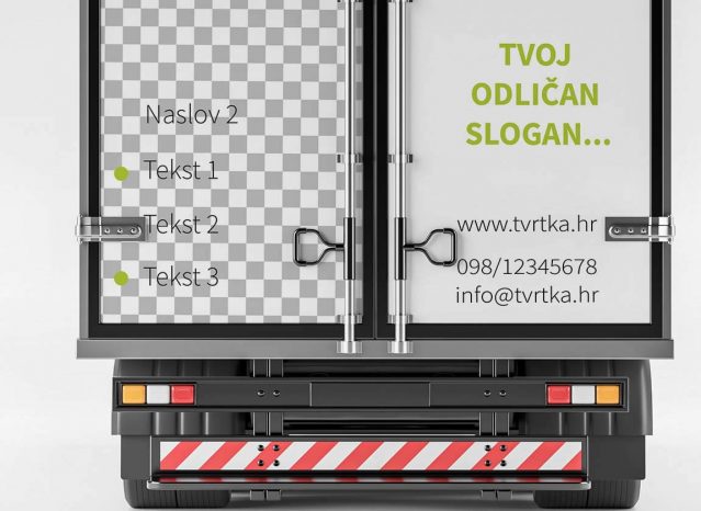 Naljepnice za stražnju stranu kamiona s izmjenjivim elementima. Montaža naljepnica za kamion je kompleksna pa predlažemo da istu povjeriš našem stručnom teamu.