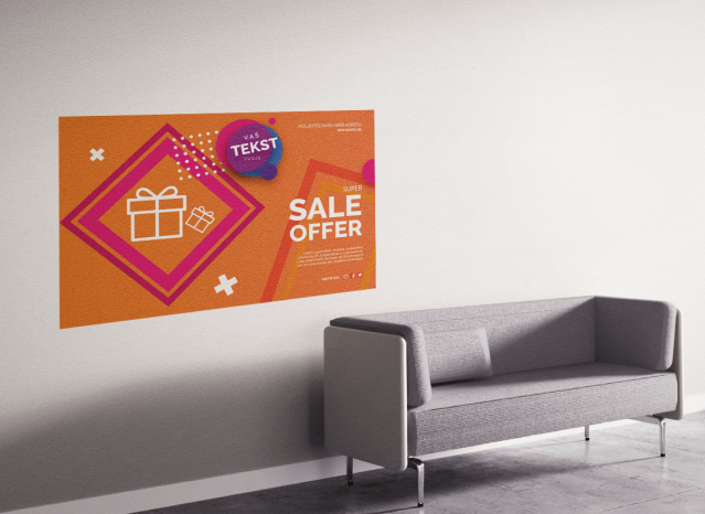 Naljepnice za zid sjajan su način brendiranja tvog poslovnog prostora. Printfull naljepnice gotovi su predlošci koji se mogu lako personalizirati prema tvojim potrebama.
