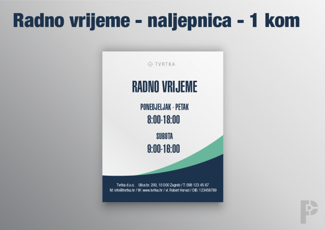 Upiši podatke radnog vremena ureda ili lokala: Pon-Pet, Subota, Nedjelja i praznici
